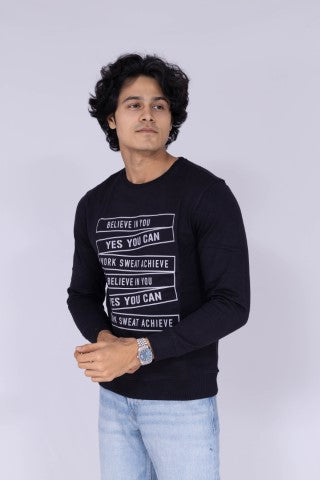Channel your self confidence with Believe Printed Men's Full Sleeve Sweatshirt. Pair this classic black sweatshirt with a pair of black or blue jeans and enjoy a comfy outfit.