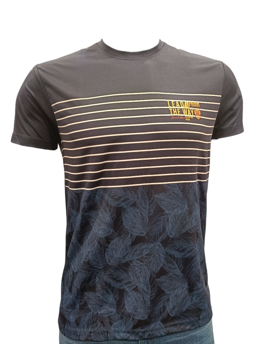 "Elevate your style with the VSB-SJRN navy blue T-shirt featuring chic printed stripes. Perfectly crafted for a fabulous look, this tee combines casual comfort with a touch of sophistication."